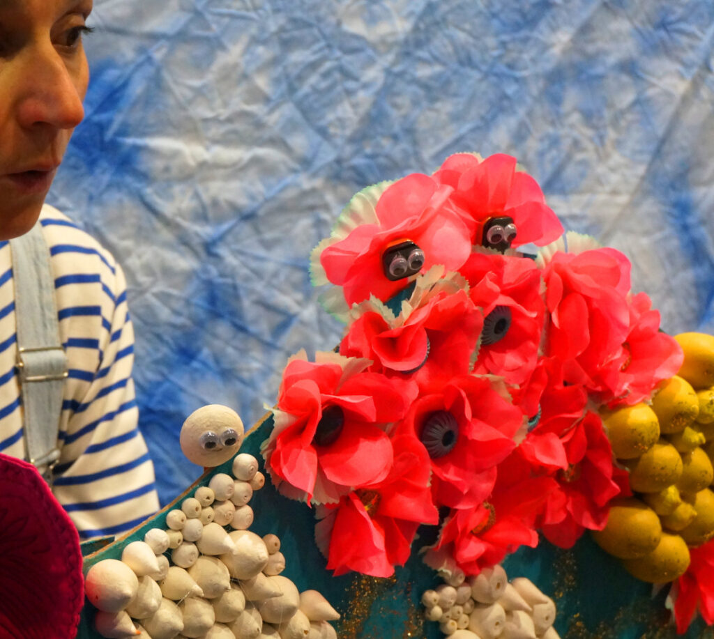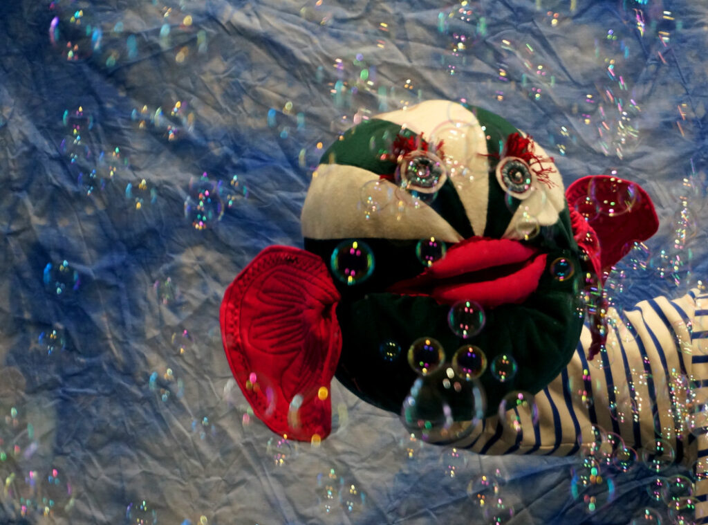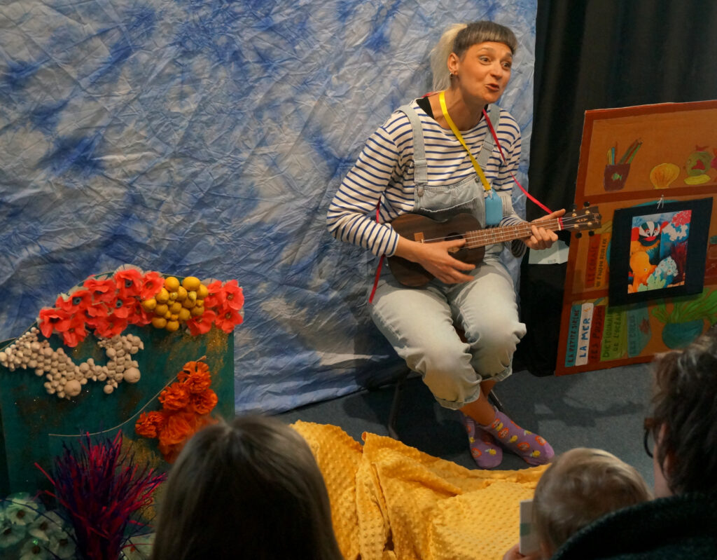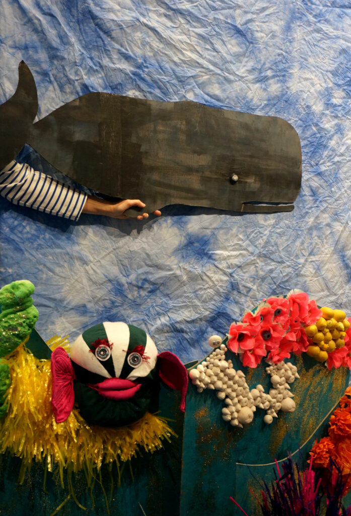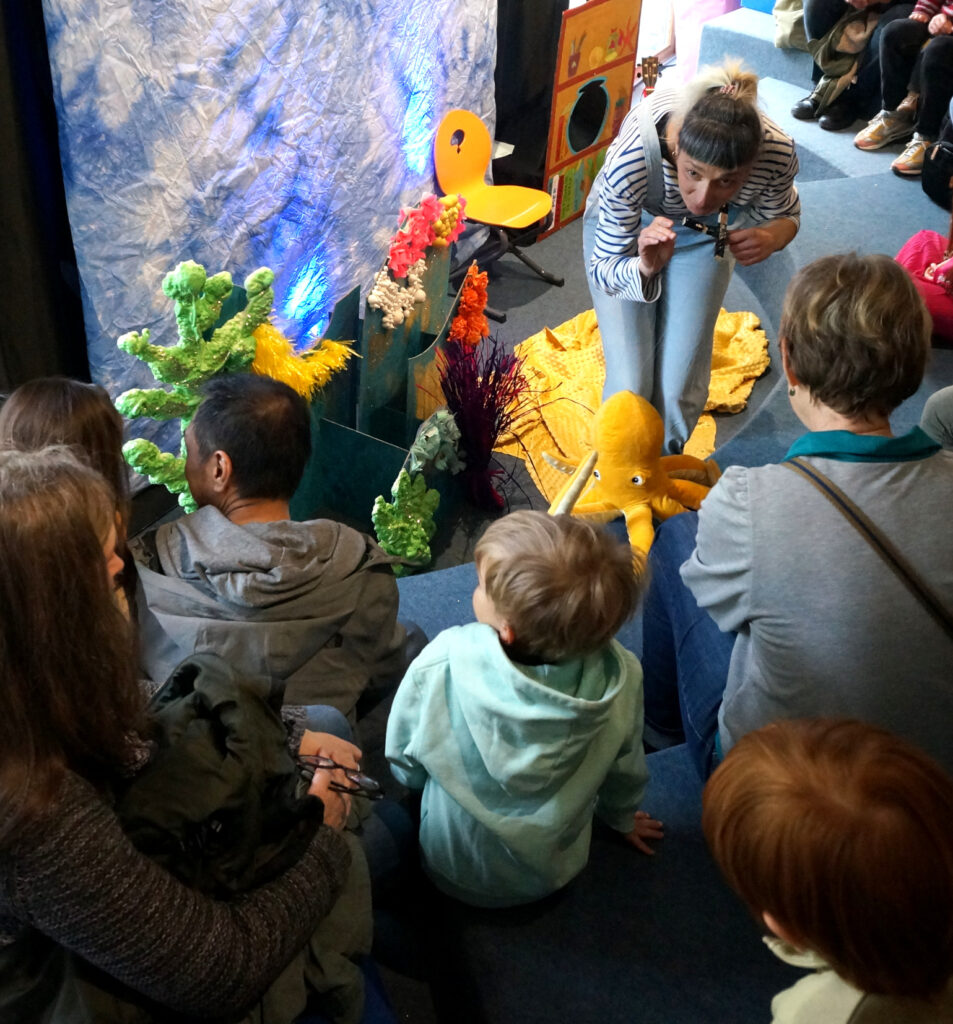 Dans ce spectacle, les enfants sont immergés dans le monde aquatique, fait de couleurs, de son, de textures et de créatures sous-marines.